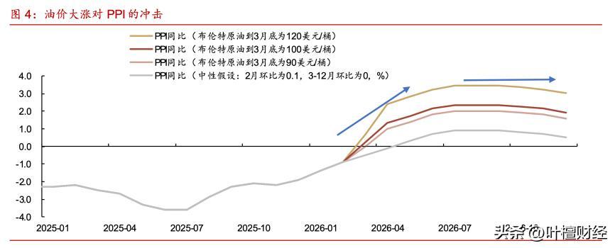 3月底,如果油價能到120美元,2026年PPI將達到3%;如果油價落在100美元,PPI將在2%左右;如果油價在90美元,PPI會在1.5%到2%之間。