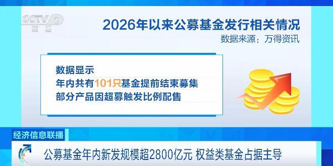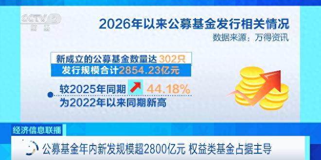 數據顯示,2026年以來新成立的公募基金數量達302只,發行規模合計2854.23億元,較2025年同期增長44.18%,爲2022年以來同期新高。