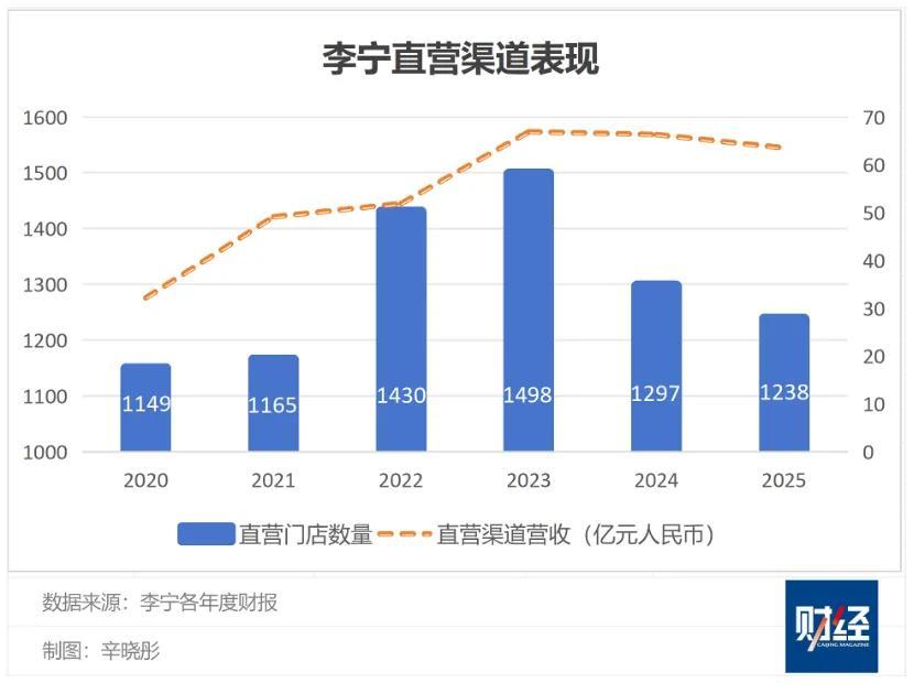除了消費大環境低迷,李寧也一直在主動關店,剝離拖累業績的低效門店。2024年和2025年,李寧累計關閉近1000家直營門店,扣除新開店鋪後,整體淨關店260家。