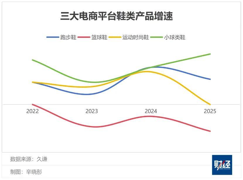 這並非李寧主動調整品類策略。根據國信證券,近幾年運動戶外行業細分品類呈現顯著分化——跑步鞋呈現加速增長的勢頭,而運動時尚鞋在2025年顯著放緩,籃球鞋自2023年以來連續下滑。