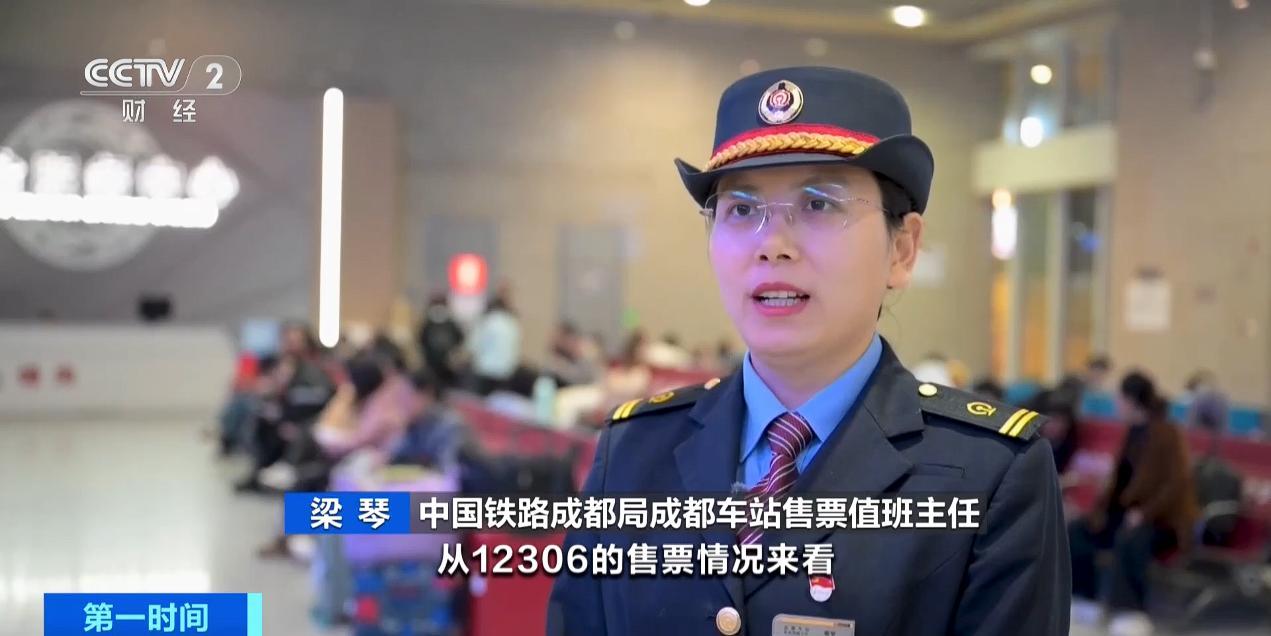 中國鐵路成都局成都車站售票值班主任 梁琴:從12306的售票情況來看,截至21日上午10點,成都車站已售出清明假期首日火車票3.6萬餘張,客流主要集中在北京、上海、廣州、西安等方向。目前,成都至重慶、貴陽、廣元、西昌等熱門旅遊城市票額較爲緊張。