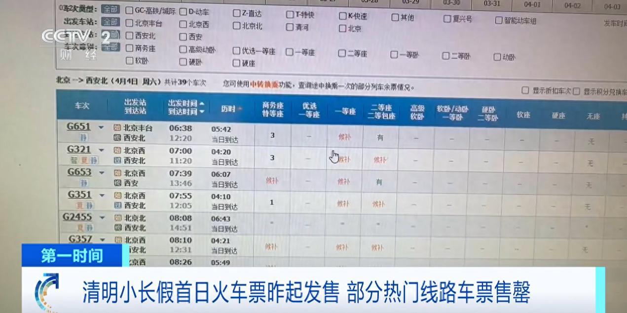 (央視財經《第一時間》)昨天(21日),清明假期首日(4月4日)火車票正式發售,目前售票情況如何?哪些城市是熱門目的地?