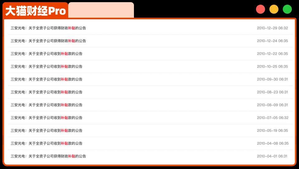 坊間猜測不少,說是跟補貼相關,畢竟三安有個綽號是A股的“補貼之王”,上市之後拿了110多億的補貼,很多大國企看了都眼紅。