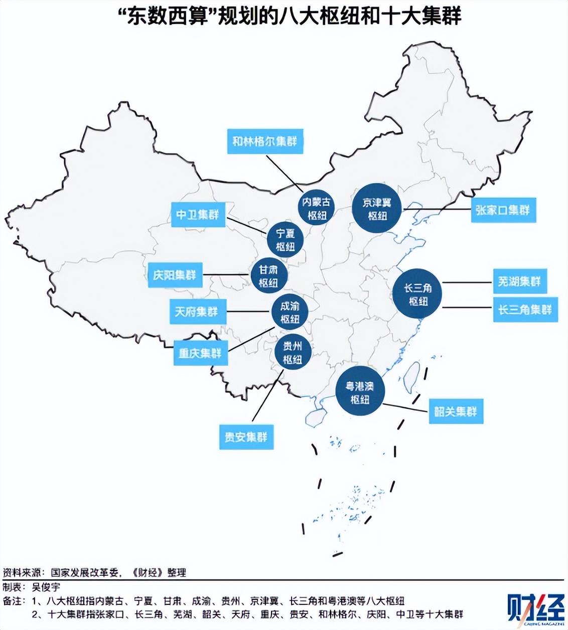 中國的“東數西算”工程規劃了“八大樞紐十大集羣”,且大型科技公司的算力中心都在朝“八大樞紐十大集羣”集中。中國西部地區,有大量風電光伏基地。內蒙古烏蘭察布等西部樞紐節點城市的綠電價格普遍低於0.4元/千瓦時。這些城市被大型科技公司用於建設十萬卡以上的超大型算力中心,並提供訓練、推理服務。