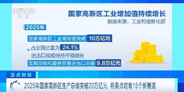 (央視財經《正點財經》)今天(10日),記者從工業和信息化部瞭解到,我國國家高新區總數達179家,已成爲科技創新和產業創新深度融合的重要載體和高新技術產業發展的主陣地。2025年,國家高新區實現園區生產總值20.4萬億元,佔全國GDP比重爲14.5%。