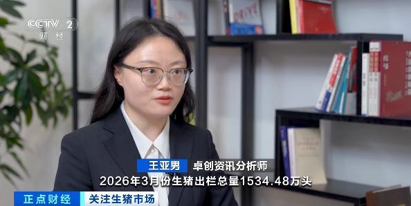 卓創資訊分析師 王亞男:根據13家上市豬企公開的財報數據顯示,2026年3月份生豬出欄總量1534.48萬頭,環比增加37.31%,同比增加6.09%。其中有54%的企業月出欄同比增加在18%以上,當前生豬出欄量仍然處於增加態勢。
