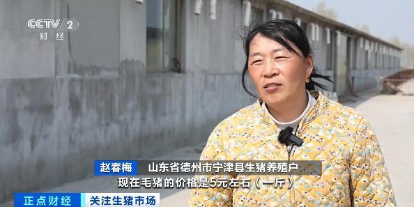 山東省德州市寧津縣生豬養殖戶 趙春梅:現在毛豬的價格是5元左右(一斤),原先(去年同期)的價格在7元左右(一斤),(出欄)一頭豬虧損200多元。