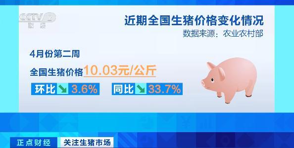 (央視財經《正點財經》)據農業農村部監測,4月份第二週全國生豬價格繼續走低,已經連續10周下降,處於七年來的低點。