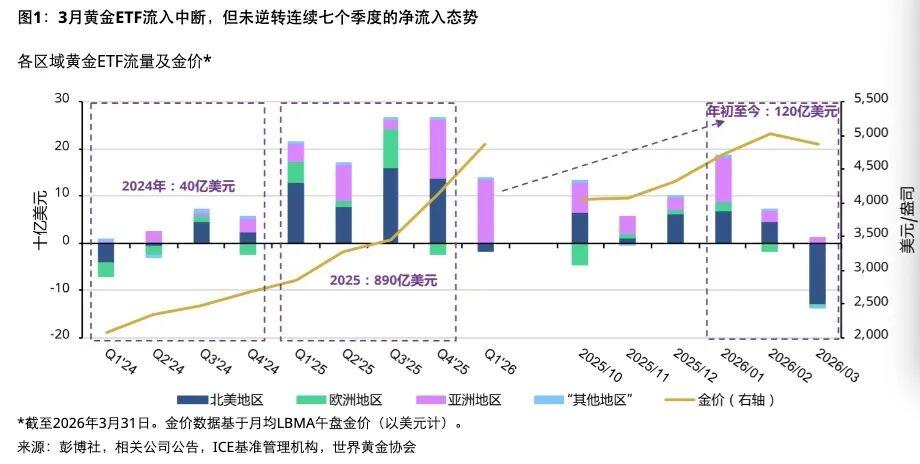 3月份,北美地區黃金ETF流出130億美元,結束了連續九個月的淨流入態勢,創下有史以來最大月度流出紀錄。