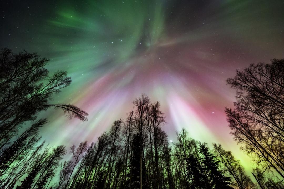 費爾班克斯是北極光環帶區域中心,全年平均有243天可以看到極光,適合9月中旬到3月中旬,觀測到極光的幾率高達90%。