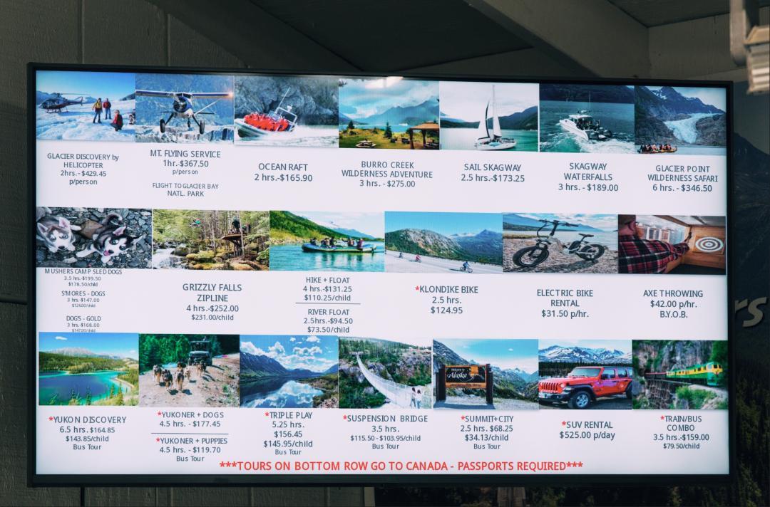 但是這樣存在被定完的風險,特別是在朱諾,每天起步就是4艘郵輪,如果你的郵輪是最遲到的,一些精華日遊可能會被定完。