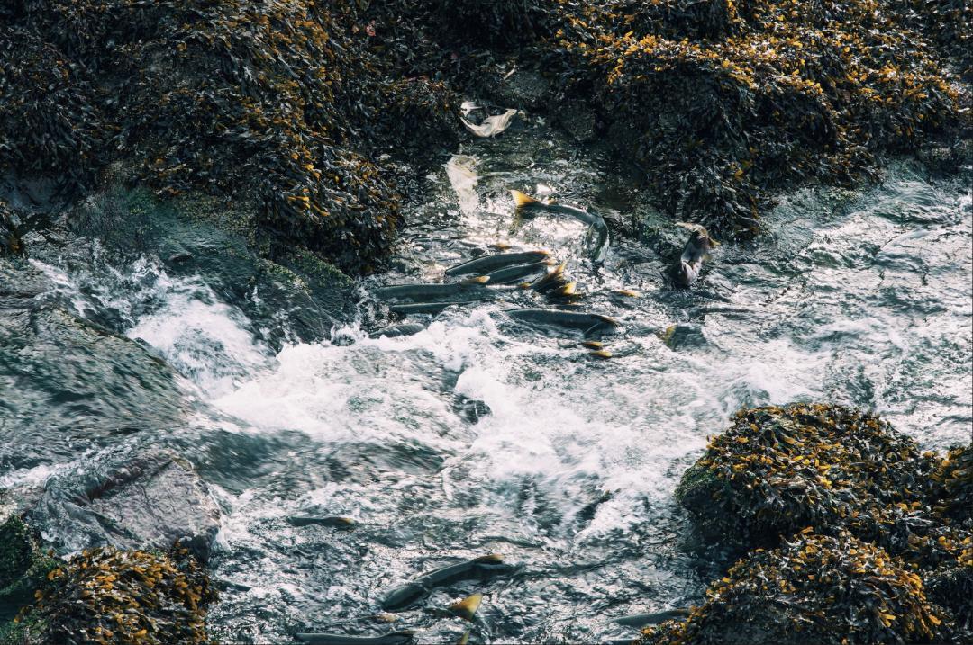 路過一條河流,正好看到鮭魚迴游的奇景。