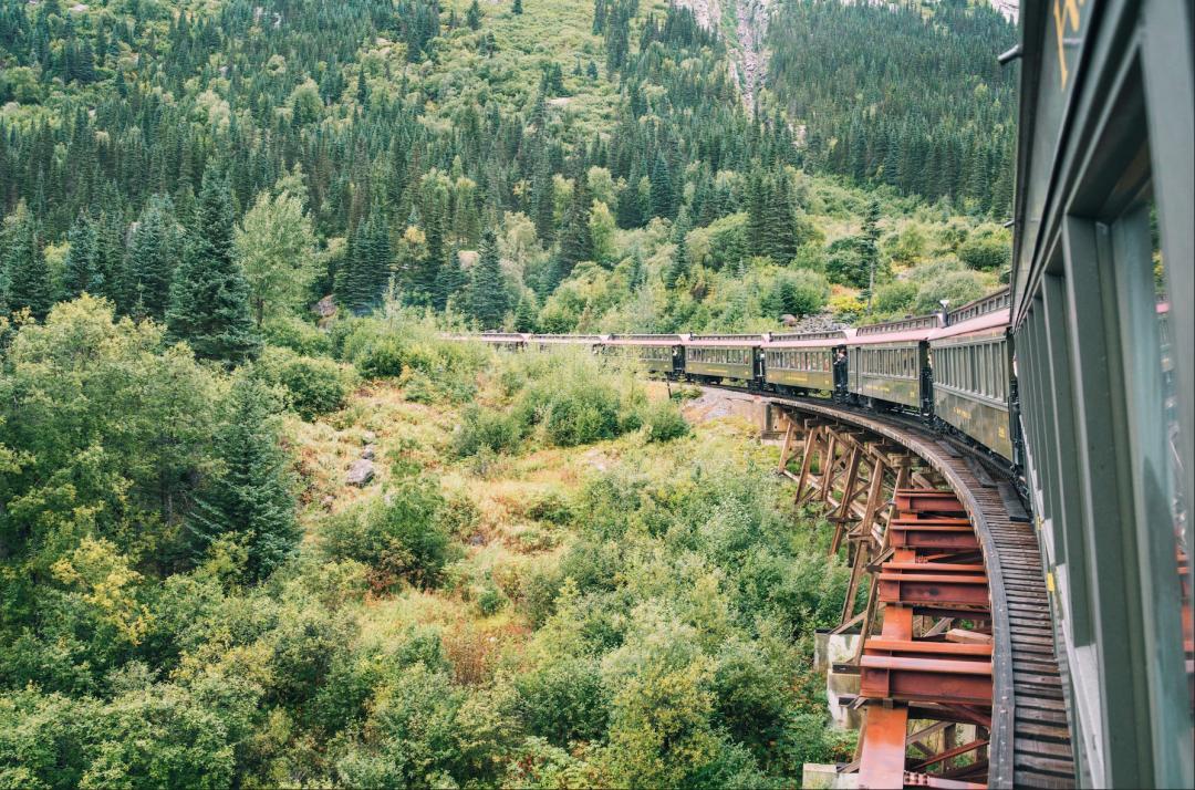 阿拉斯加淘金熱時期的重要門戶,可以乘坐復古火車沿淘金鐵路穿越峽谷、隧道與冰川,最終到達加拿大的育空地區。