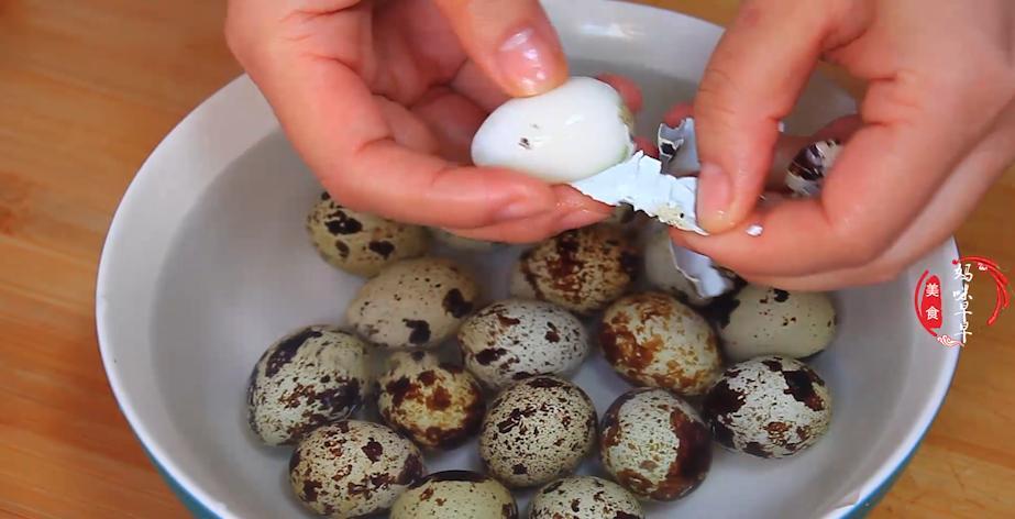 2,鵪鶉蛋在小鍋裏煮熟,然後撈出後放入清水中過涼,這樣容易剝皮。