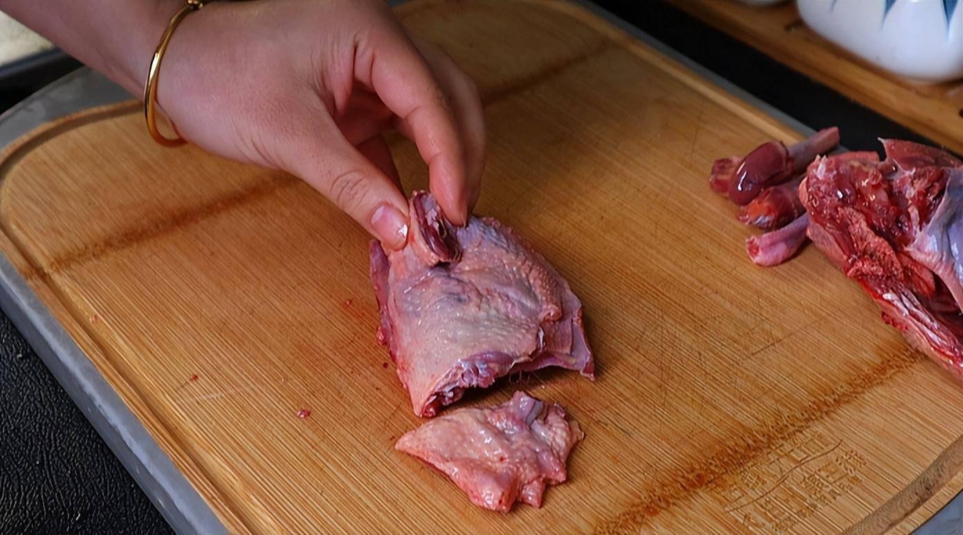 1、準備一隻鴿子先用清水沖洗乾淨,然後把鴿子從中間剁開,再剁成小塊即可。