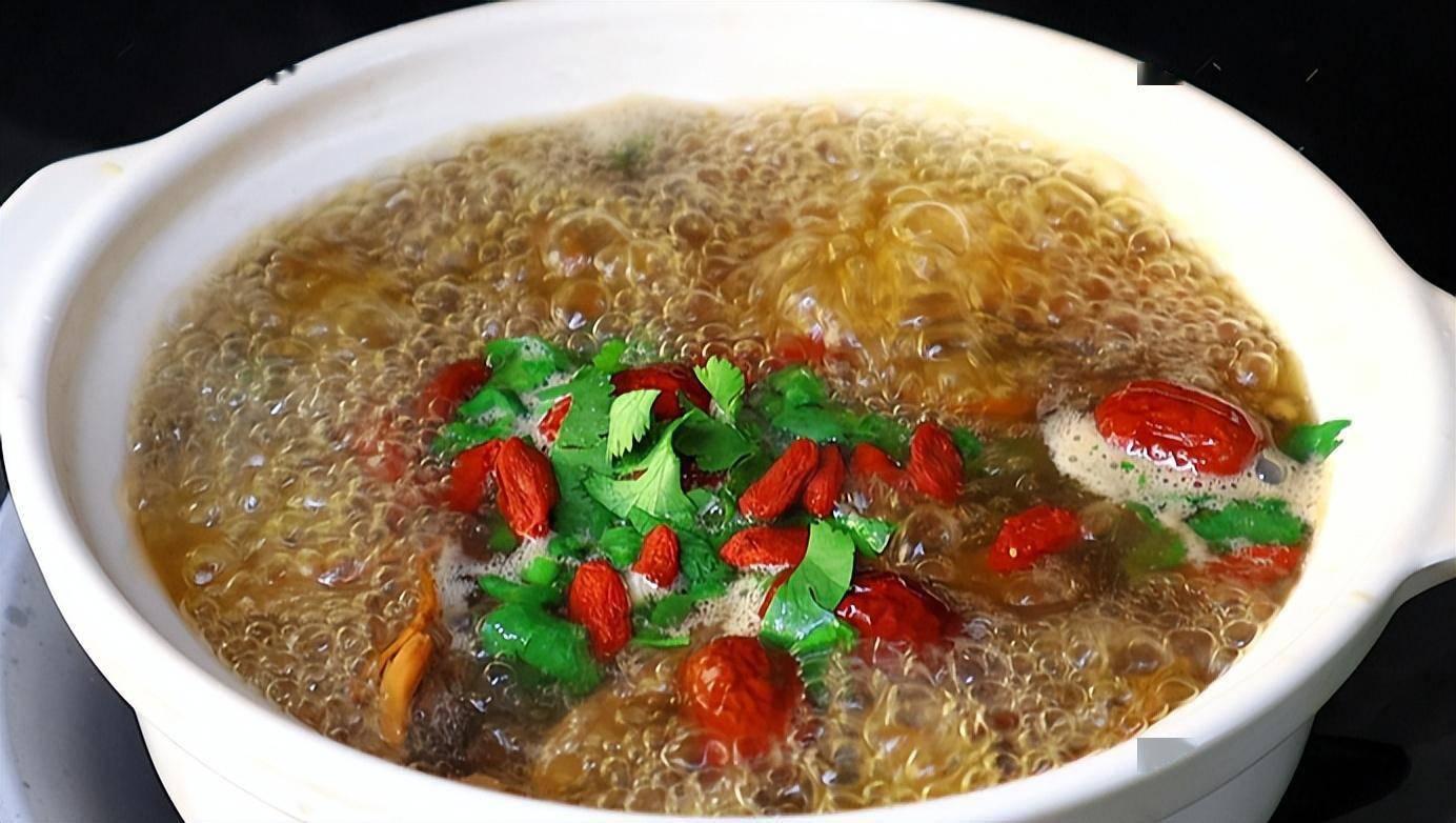 5、時間到了後只需要放鹽和雞精即可,撒上一些蔥花香菜,枸杞。