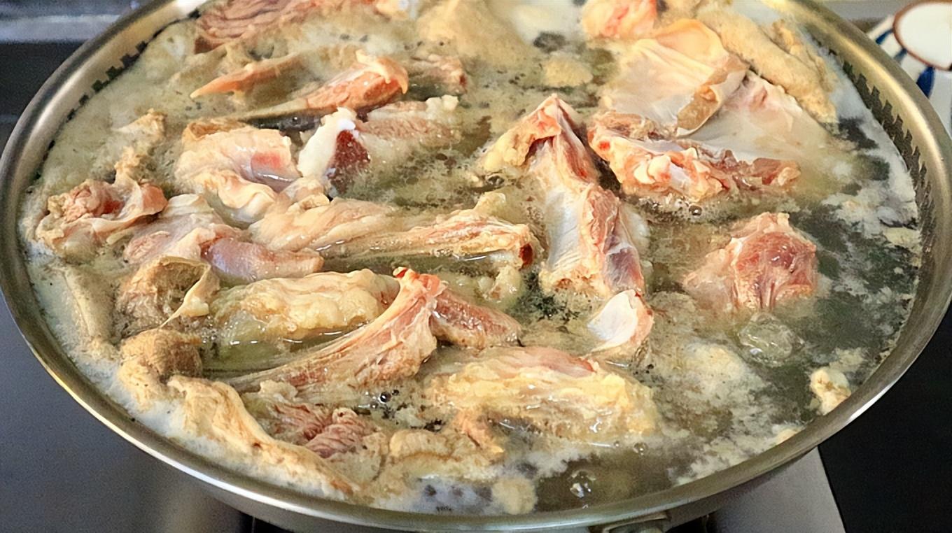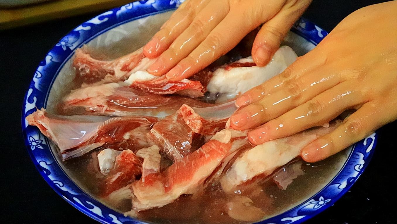 3、撈出羊排記得再用溫水清洗,切記別用涼水,那樣羊肉就柴了。