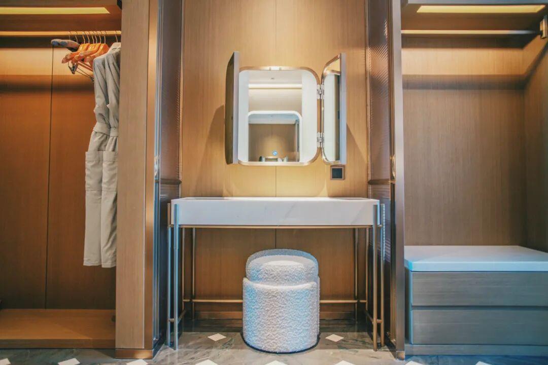 房間很寬敞,設置了沙發休憩區,還有獨立的化妝臺空間。
