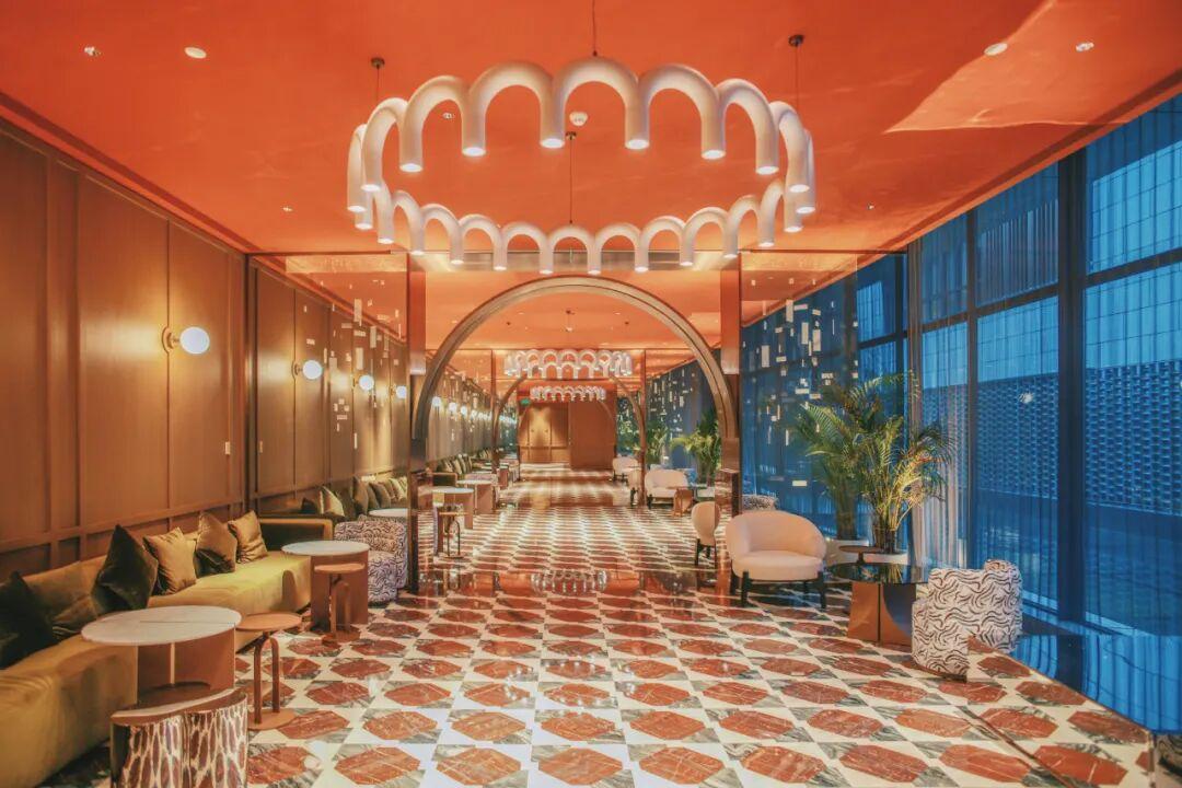 酒店整體以柔軟又鮮活的石榴紅爲主色調,源自落日餘暉落入運河中,染紅一片水光的浪漫色彩。