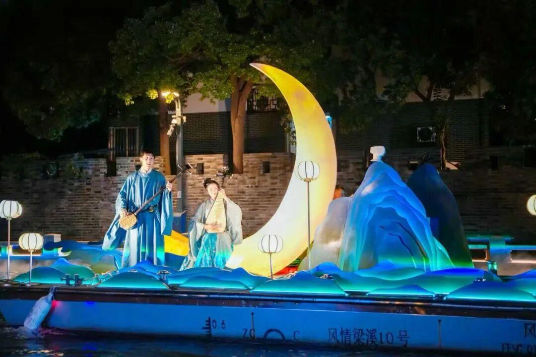 船程大概90分鐘,通過全息投影、真人演繹、水上演藝船等現代技術,再現運河繁華,如夢似幻。
