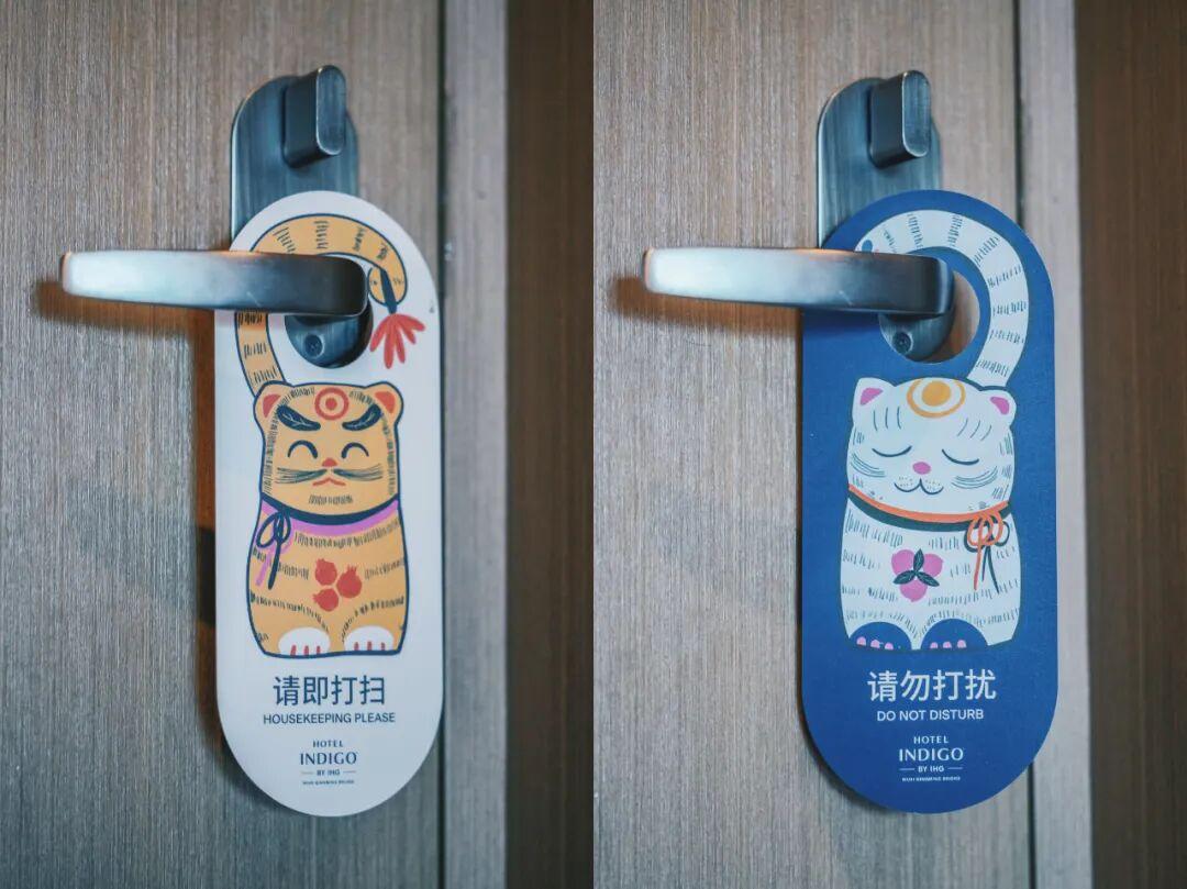 還有無錫人自己的“招財貓”——蠶貓形象,悄悄掛在客房的門把手上。