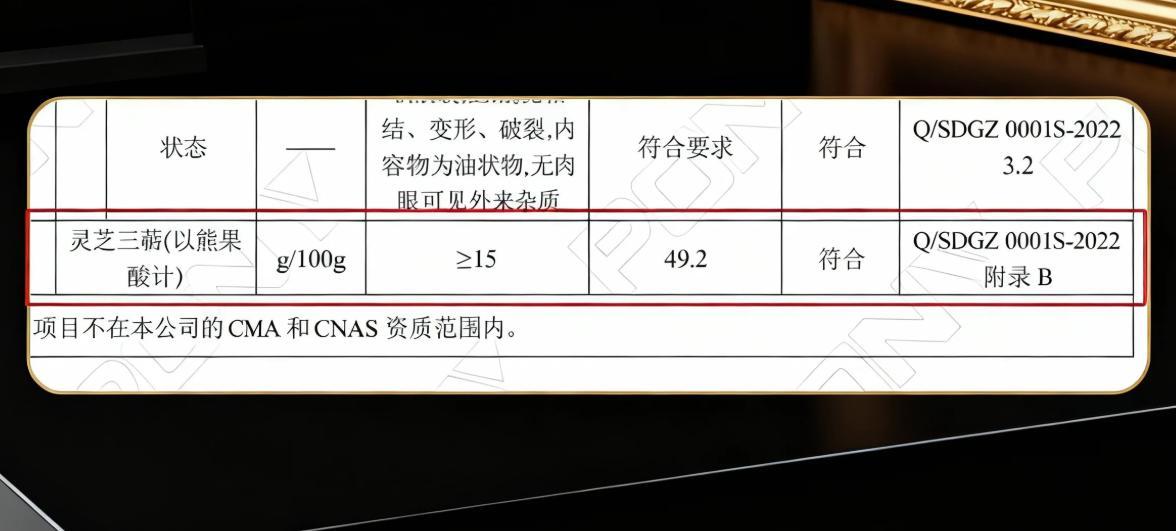 關於有效成分,它的數據也相當亮眼。經機構檢測,每100克孢子油中,總三萜含量達到49.2克。麥角甾醇含量爲83毫克。這類成分在業內被視爲衡量品質的重要指標,其表現說明原料與工藝的結合效果達到了較高水平。