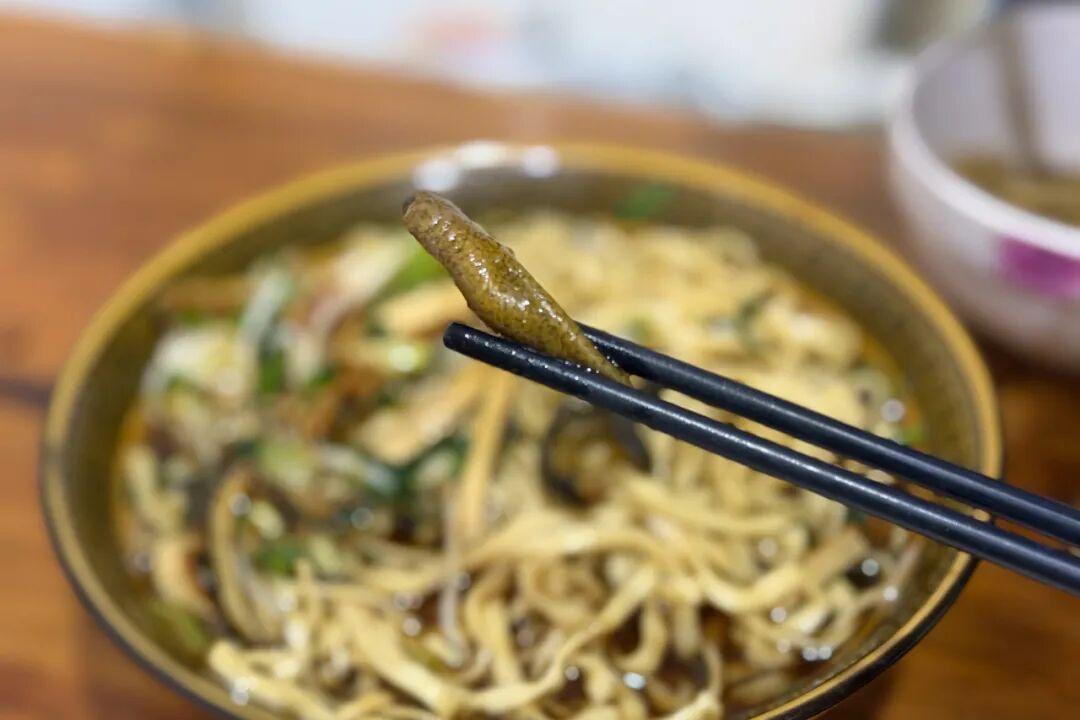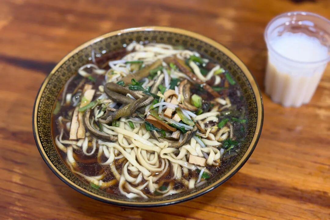 在好再來點了招牌鱔絲面。鱔魚提前去骨,細緻劃成鱔絲,嫩滑無腥氣。麪湯帶着漂亮的油花,鹹鮮中帶點甜味,落胃極了。