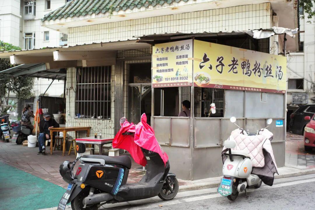 六子老鴨粉絲湯門口有兩家炸串店,算是“戰略合作伙伴”。一碗粉絲湯,一盤小炸串,喫得很美了。