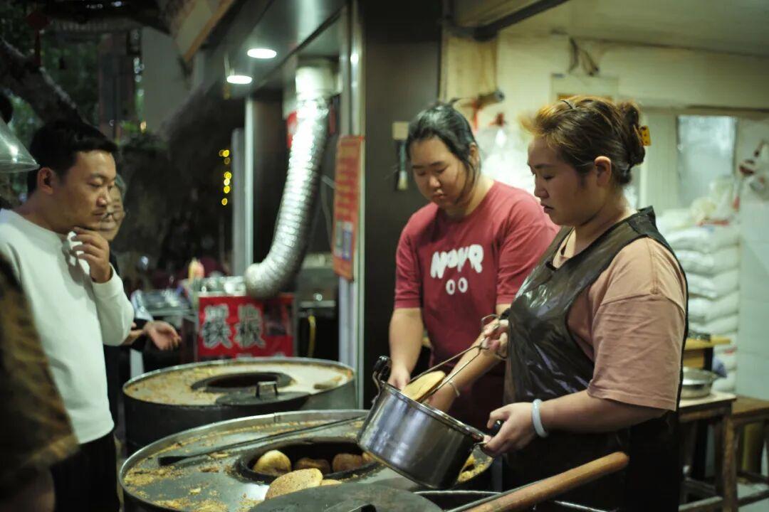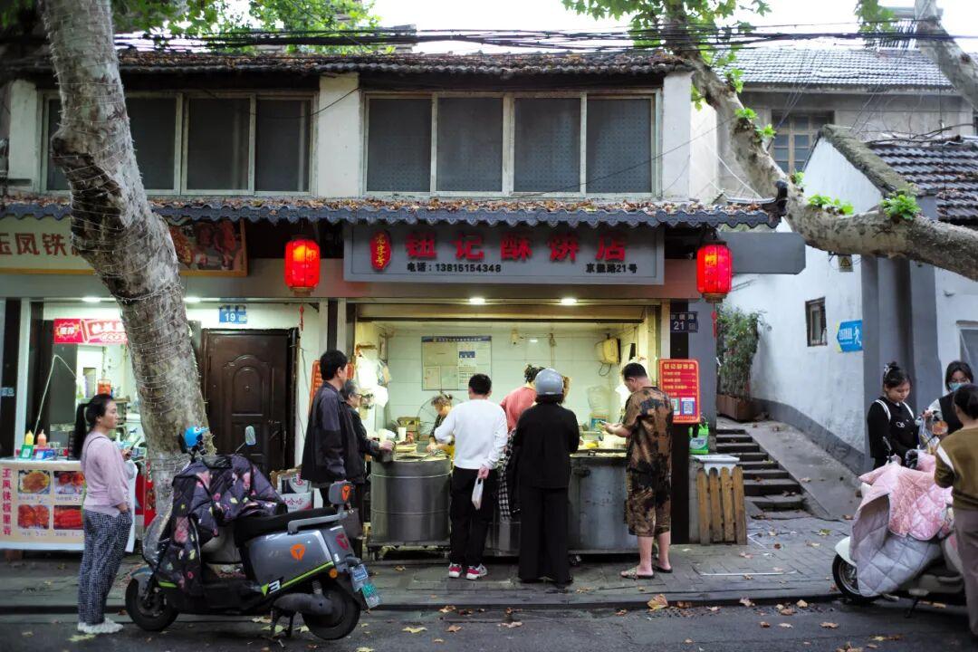 京畿路上的排隊王,當屬鈕記酥餅店。三個爐子火力全開,出爐一批賣空一批。雖然坐實了網紅名號,但排隊的大半是本地人,不是什麼“遊客專門店”。