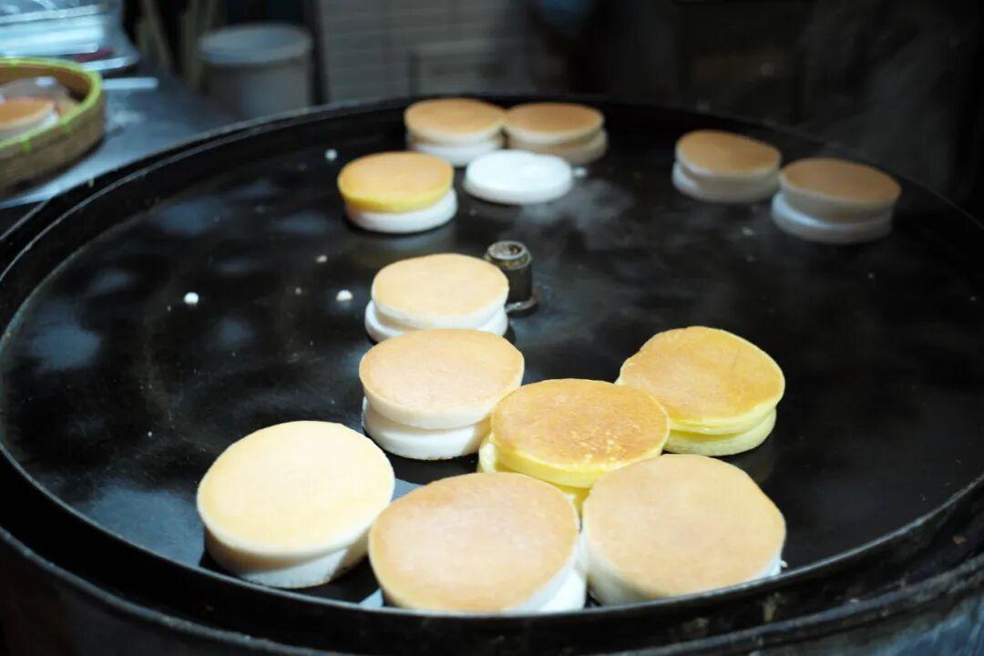 鎮江好喫的糕點不要太多,大京果、鬆糕、金剛臍(中式貝果)……在斜橋街幸運蹲到了現做現賣的鬆糕攤,1.5元/個,紅豆餡的,鬆軟香甜。