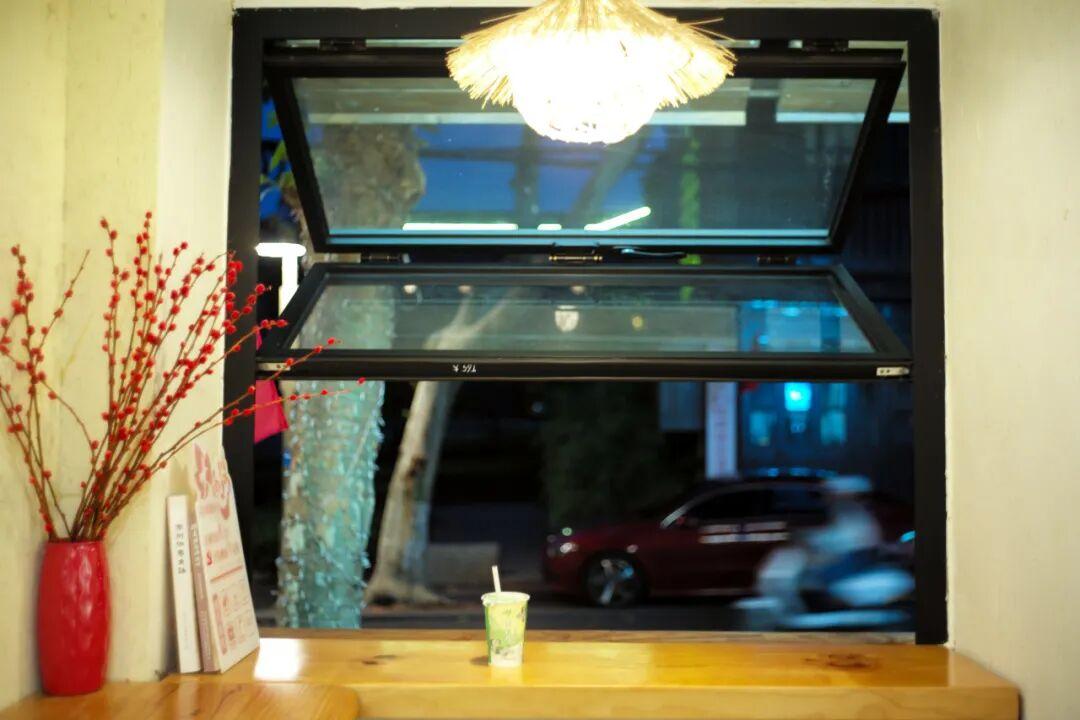 華燈初上,亮燈的京畿路很漂亮,適合找家小酒吧坐坐看夜景。這家「渡」是日咖夜酒的形式,二樓小露臺搭了月亮燈,還挺出片的。