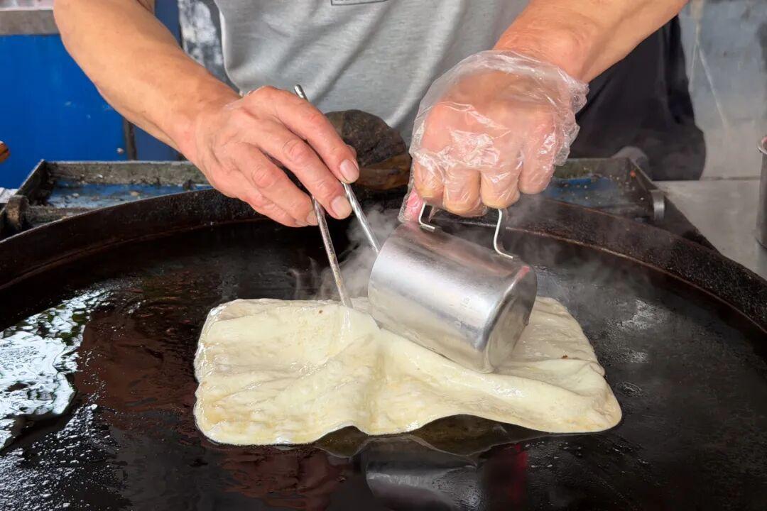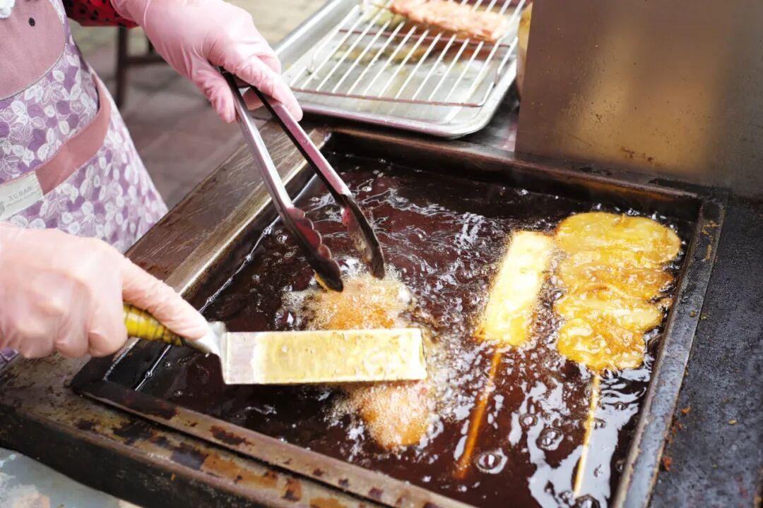斜橋街上還有一家出名的油墩子攤,位置大概在羅森便利店附近,不過也要下午纔出攤。