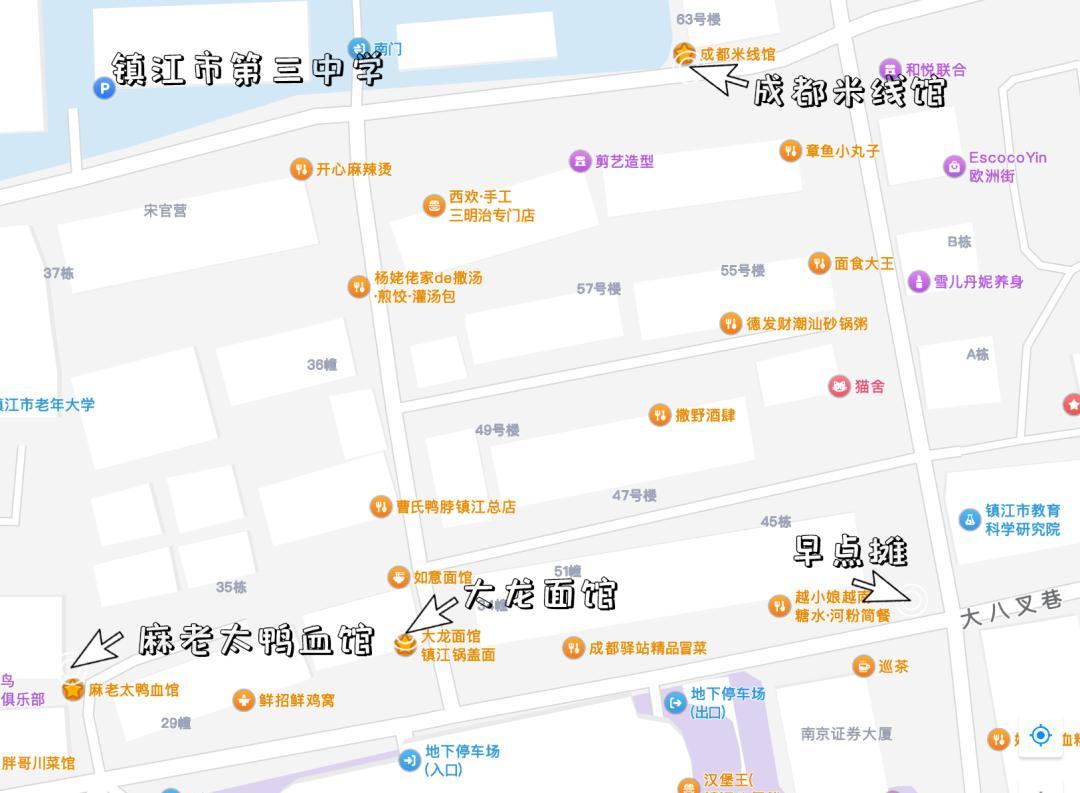 斜橋街中段,鎮江市第三中學就落在這裏。學校附近的早點攤是最頂的,量大平價好喫。這些早點攤基本固定,位置我標註在下文地圖裏。