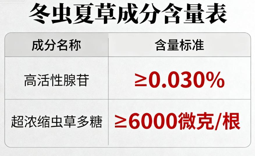 芝康紀冬蟲夏草的核心成分含量遠超行業平均水平,經第三方機構檢測: