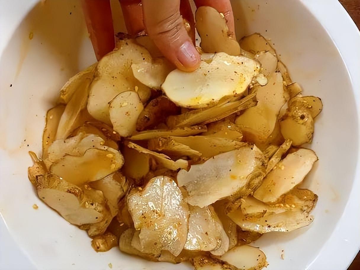 鬼子姜做法多着呢!我媽每年醃一罈:切小塊撒鹽、花椒、八角,倒生抽和白酒密封,半個月後開壇,香味兒能飄滿院,早上配白粥,我能多喝一碗。還能切小丁跟肉末炒,肉末香混着鬼子姜的脆,拌米飯絕了!