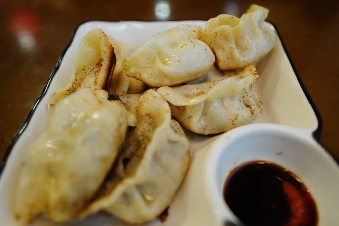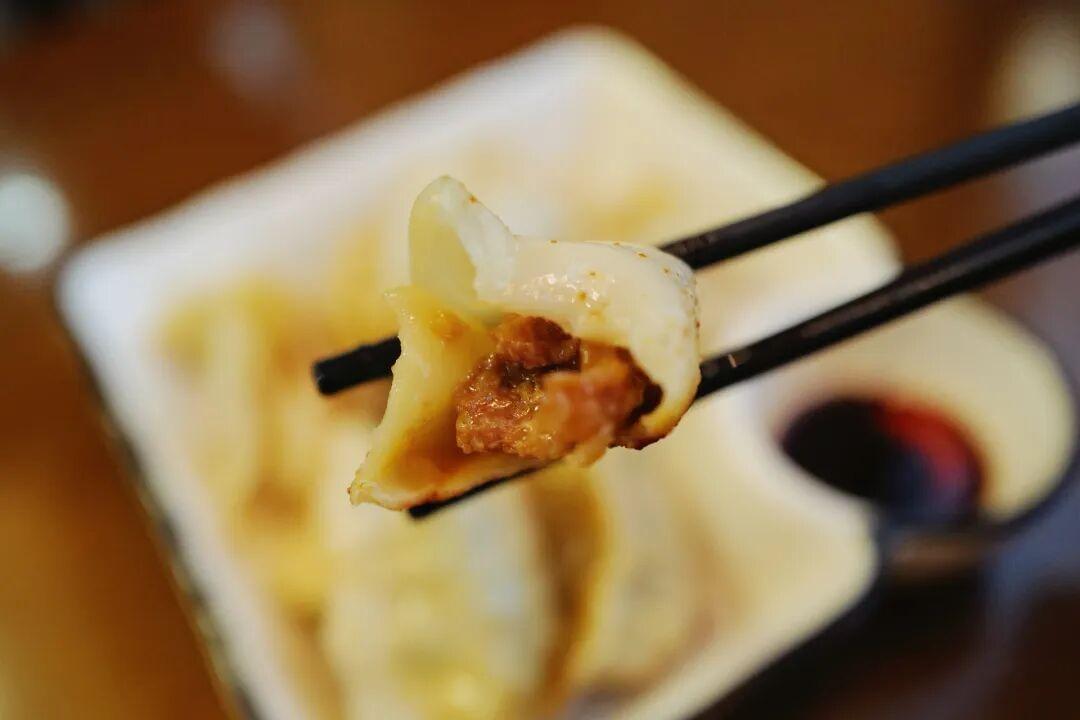 再配一份剛剛出爐的煎餃,一口咔滋脆,一口鮮香美。