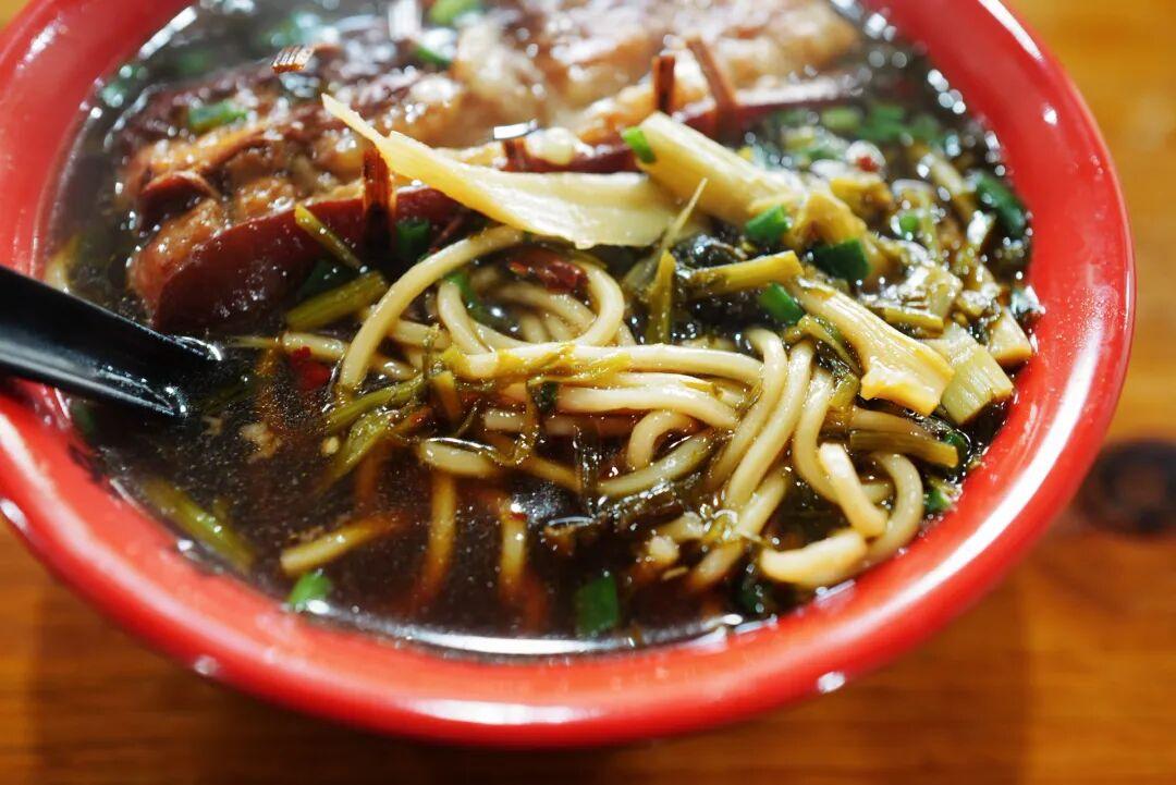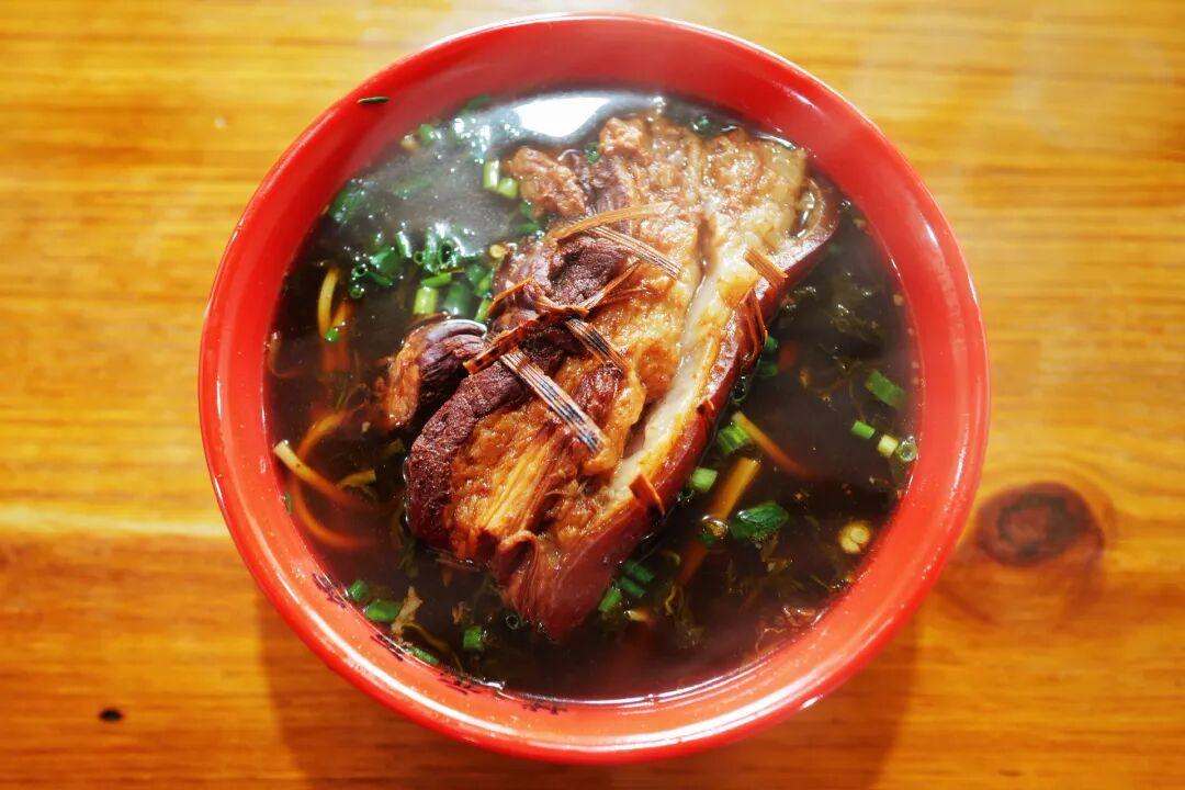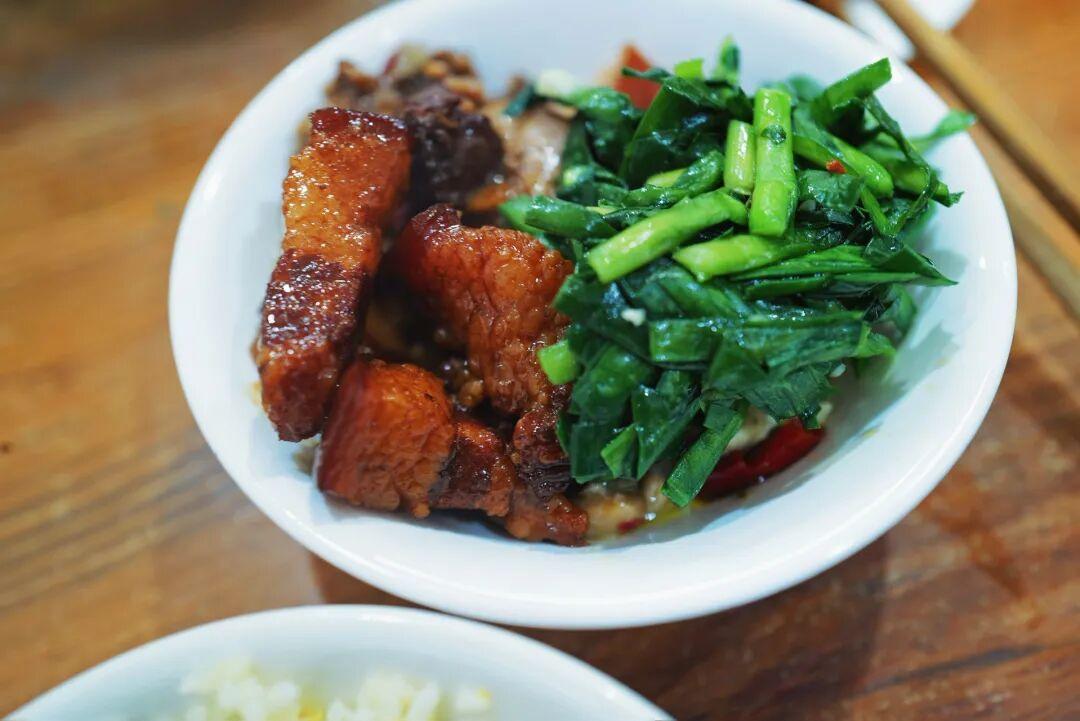 麪條撈熟下湯,碼上雪菜小筍,再放上一塊滷好的大肉,可以根據喜好讓老闆挑肥瘦。大肉燉得酥爛,一口咬下去,直接在嘴裏化開,滿口脂香。