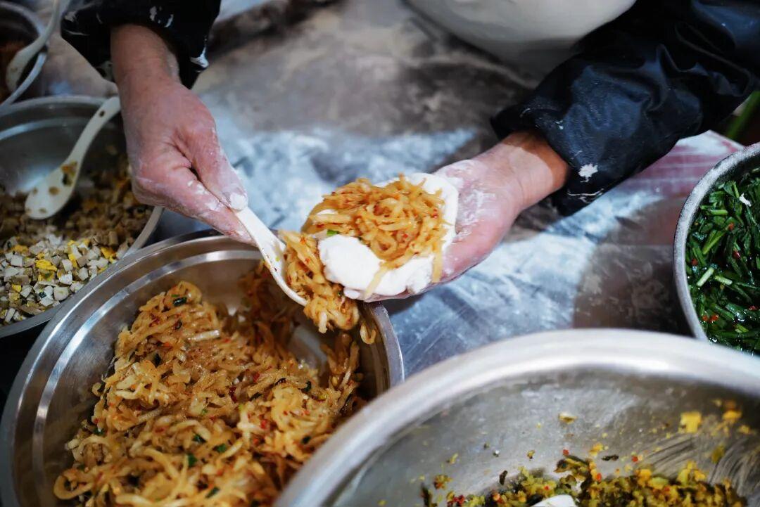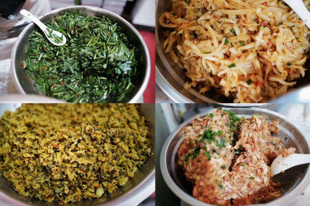 每個餅都是現包的,有蘿蔔絲、雪菜、韭菜、豆乾,四種餡可選,也可以選兩種雙拼。