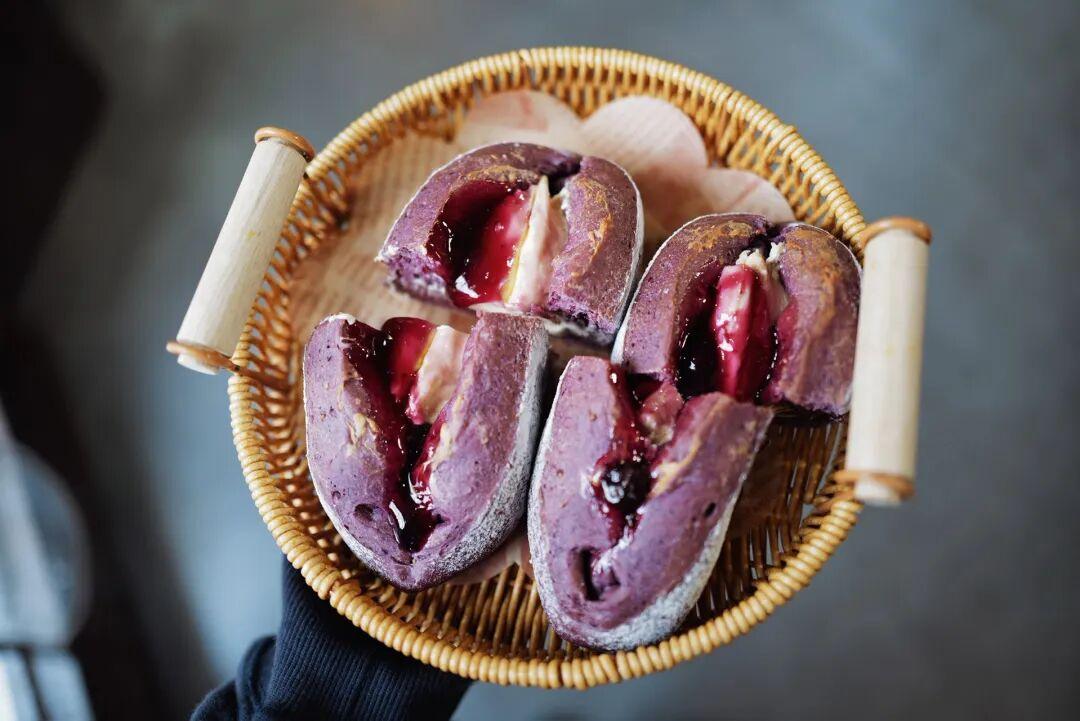我路過聞到了香甜味,就進來看了看,正巧碰上面包新鮮出爐,香得叻。麪包體很鬆軟,能喫出用料不錯,藍莓醬也是店裏自己熬的。