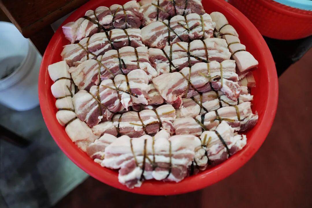 我去的時候正趕上店裏捆大肉,一塊塊肥美的五花肉被五花大綁,太有視覺衝擊力了。