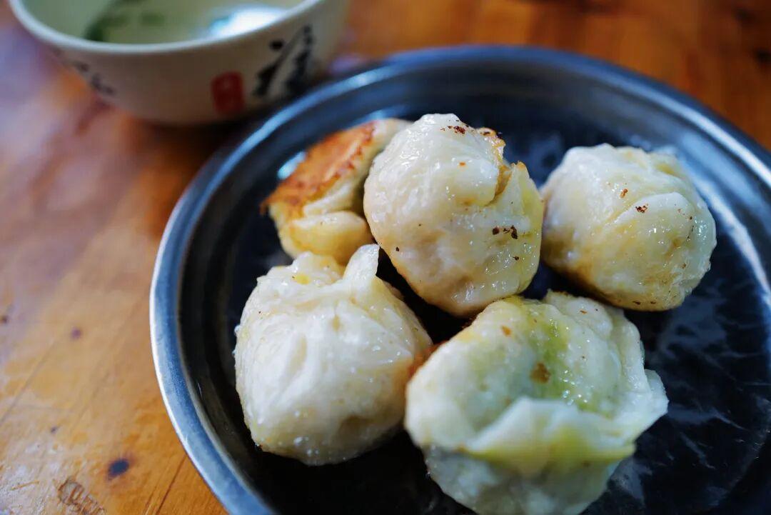 包子個頭不大,麪皮是恰到好處的微微發麪,底部煎得焦香,咬起來是有脆感的。肉餡加了蔥,很香,配上鮮美的骨頭湯很落胃,要不是得留着點肚子,我高低得喫上十個纔夠。