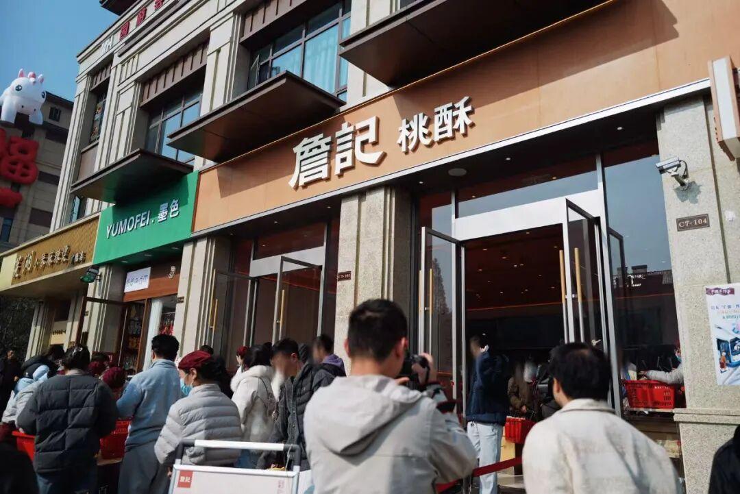 隔壁詹記桃酥,也是一樣人山又人海的,大家都是提着滿滿一籃子出來的。他們家的紅茶桃酥還挺好喫的,不會特別甜,茶香味很濃。