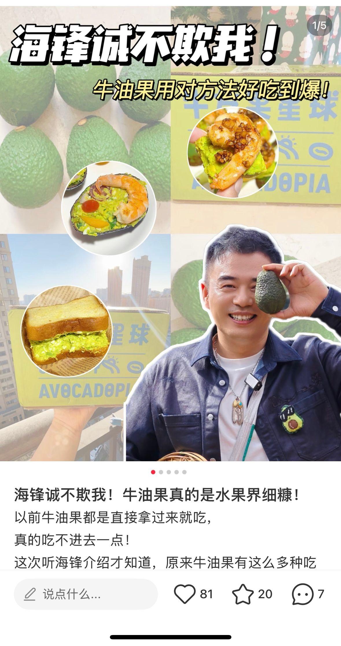 海鋒在鏡頭前細緻描述食物口感、解鎖不同喫法時,他實際上在做一件很重要的事,那就是重建人們對食物本身的感知。在這個被外賣和預製菜快節奏餵養的時代,很多人已經忘了蘋果的脆和麪有何區別,不記得牛油果除了拌沙拉還能怎麼喫。