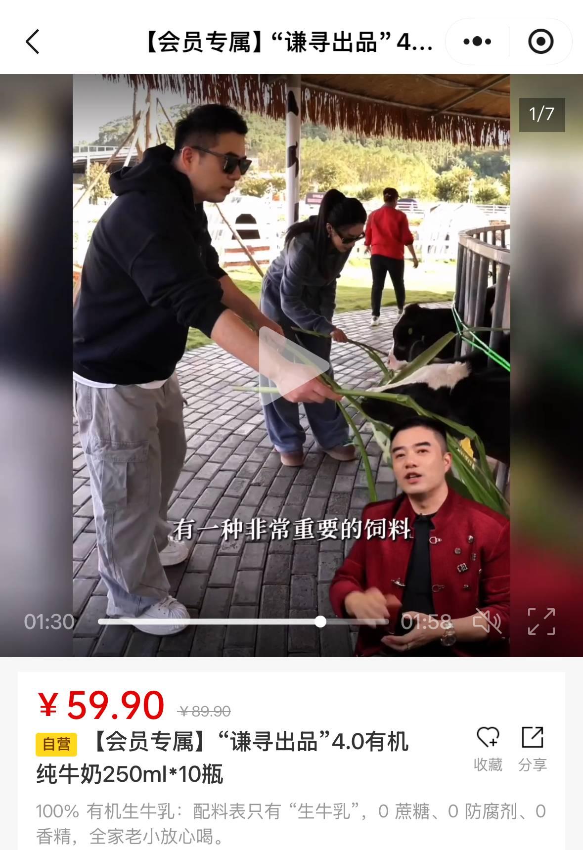 如果說個人試喫是建立感性認知,那麼謙尋在自營產品上的動作,則是將這種信任推向系統化的理性層面。最近謙尋上線的自營牛奶,海鋒和薇婭直接去了廣西牧場,鏡頭毫無保留地帶用戶檢視一切。奶牛生活在什麼樣的牛舍裏,喫的飼料是什麼成分,現代化的大轉盤如何高效衛生地擠奶,整個生產鏈路如何運轉。