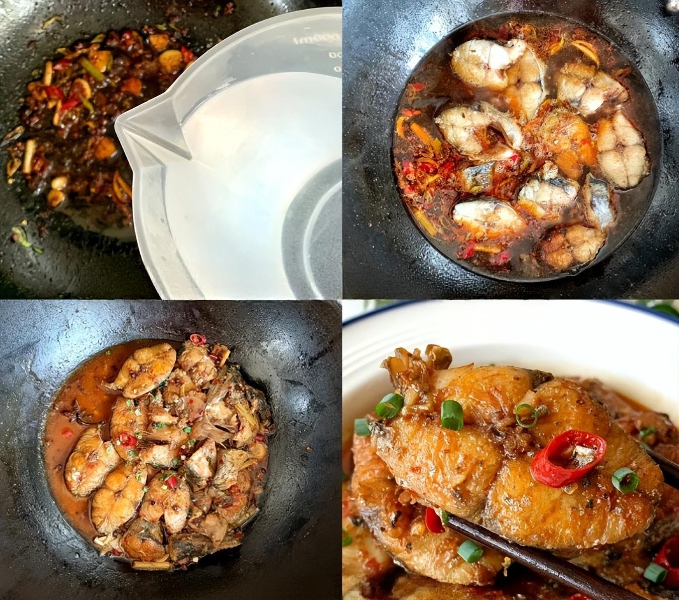 4、放入鮁魚中小火13分鐘,湯汁濃稠後撒上蔥花,裝盤開喫。