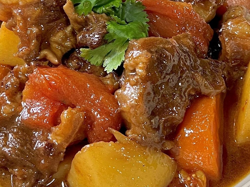 準備食材:牛腩,番茄,土豆,薑片,蔥段,八角,香葉,洋蔥,冰糖。