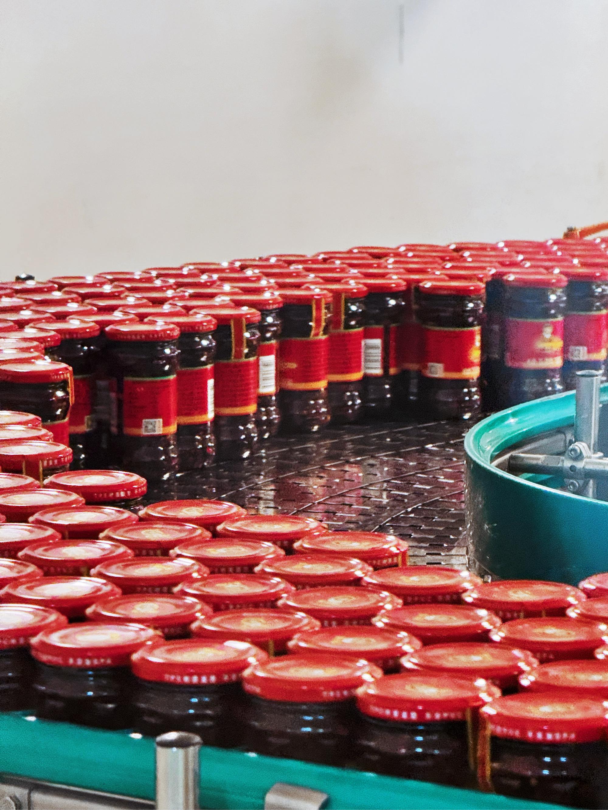 這份對品質的極致堅守,成了老乾媽的“救贖密碼”。陶華碧每天泡在生產車間,親自把控每一道工序:從貴州2萬畝有機辣椒種植基地的原料篩選,到12個月的標準豆豉發酵,再到生產線上±2℃誤差的油溫控制,每一瓶辣醬都要經過多重檢測才能出廠。
