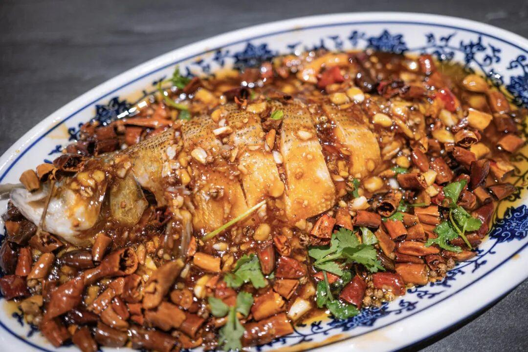 蒜爆魚,味道鮮明直接的菜餚,價格按魚的品種來算,最便宜的鯉魚僅18元,實惠親民。
