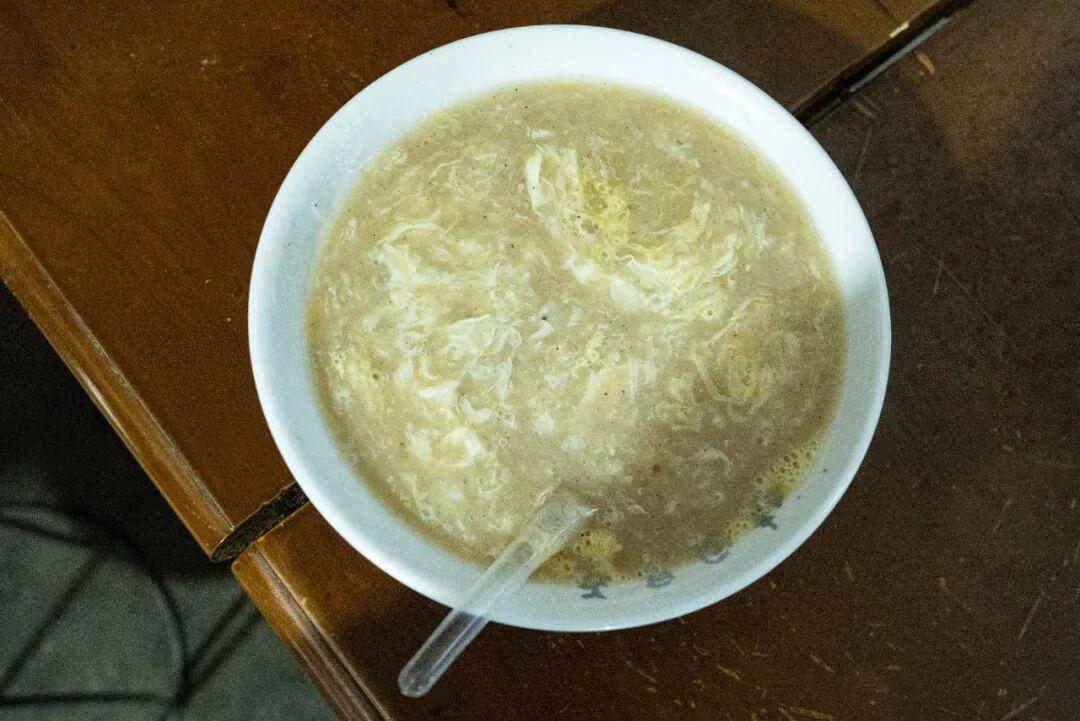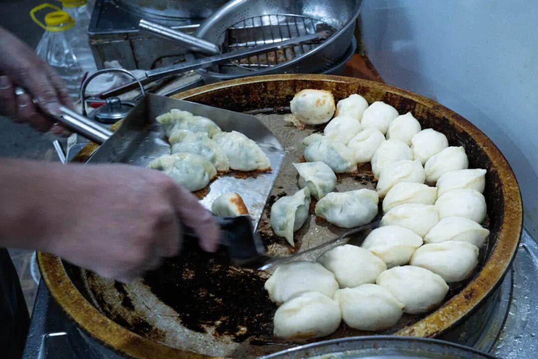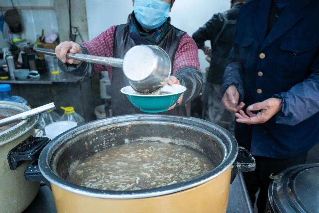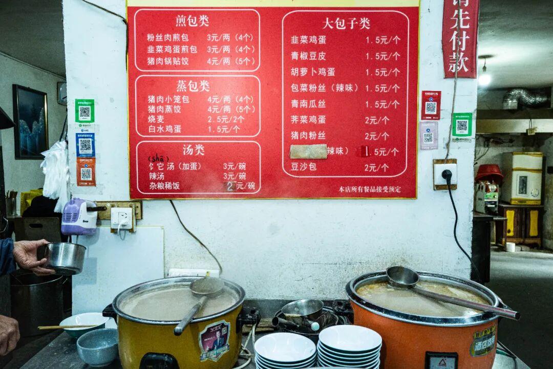 早餐店開在當地的老居民樓底下,只做早餐,每日食客不斷。這種社區飯館的好處就是煙火氣滿滿,湯現熬現打,麪點現包現煎,樸實無華的功夫下一點不整預製菜。