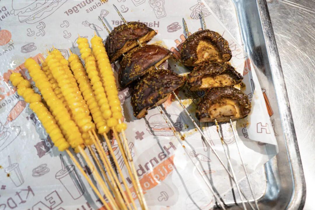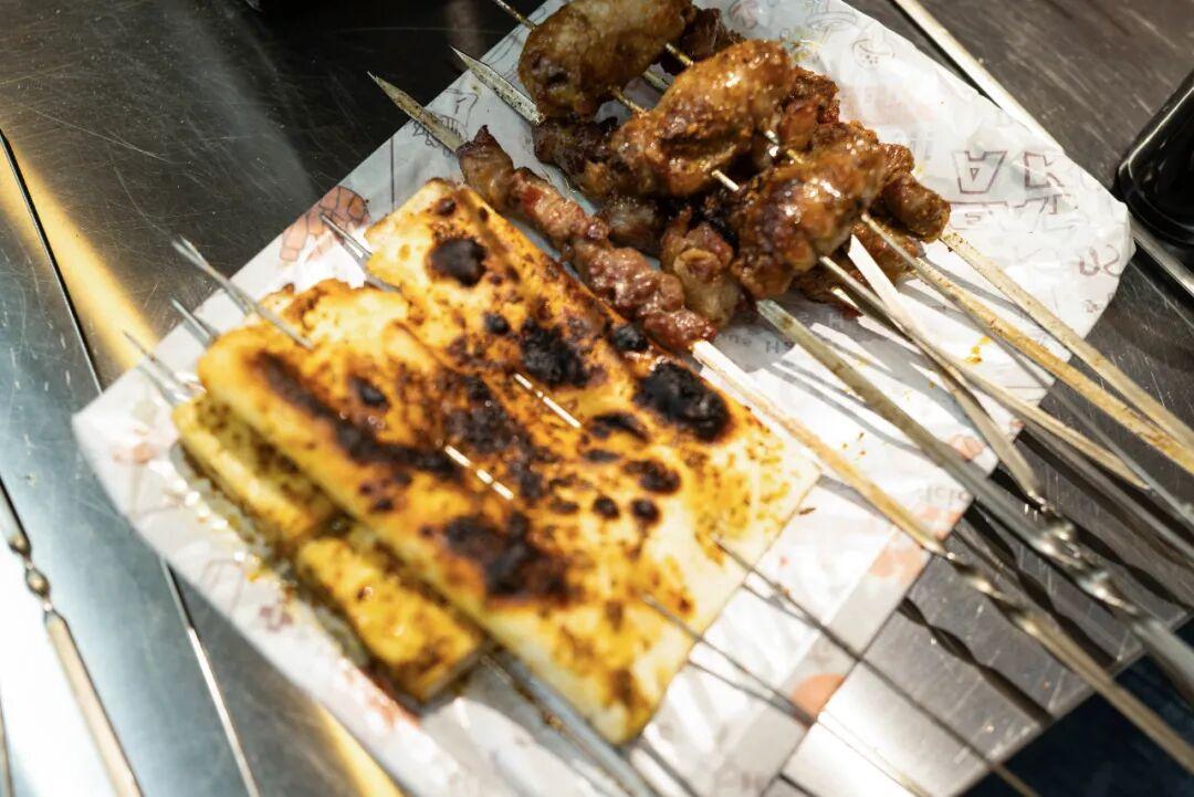 口味清淡的朋友可以選白串,羊肉串炙烤的時候只放鹽,品的是食材本來的鮮味。想嘗試本地特色的推薦刷上一層甜醋,當地人喫燒烤的必備蘸料,酸甜口。